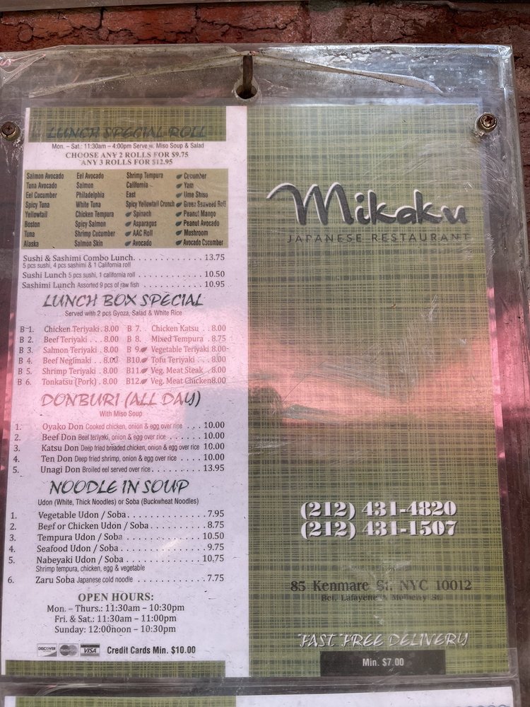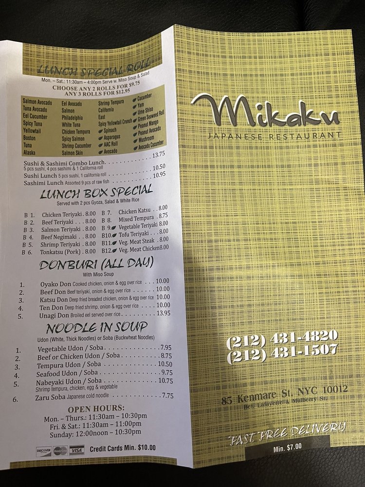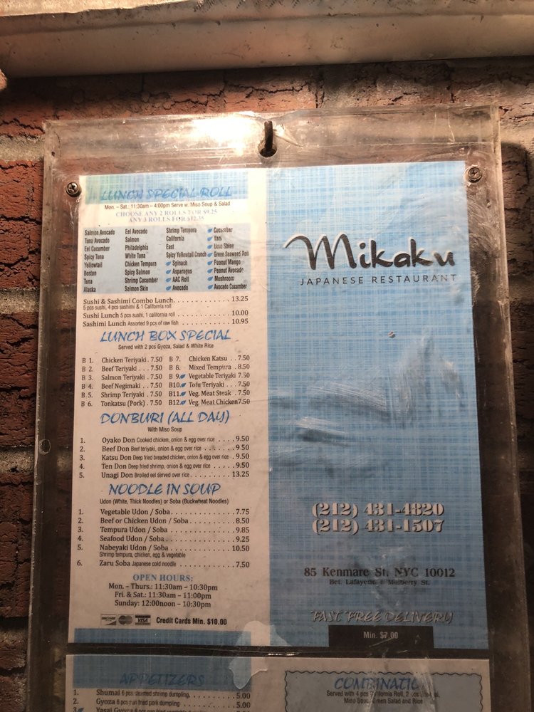 Welcome to Mikaku Sushi, a charming Japanese eatery located at 85 Kenmare St, New York. This cozy spot offers an impressive menu that caters to both sushi lovers and comfort food enthusiasts alike.