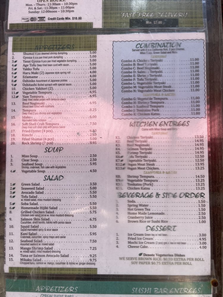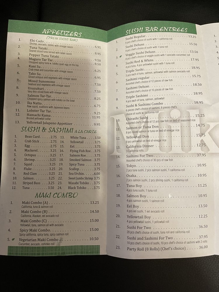 Don't miss out on the creative rolls, like the classic California Roll for $6.75 or the rich Salmon Skin Roll for $7.25. Each dish exemplifies quality and freshness, perfect for a quick lunch or a cozy dinner.